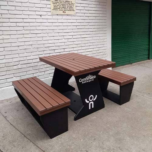Nuestros juegos de picnic son 100% impermeables y libres de mantenimiento, no los ataca ningún tipo de microorganismo, no se oxidan, no se pudren y no se corroen, son resistentes a químicos como el cloro, sal marina y la intemperie, no se desmoronan y son livianos facilitando su movilización, se fabrican modulares de sobreponer, también se pueden fabricar para asegurar al piso.